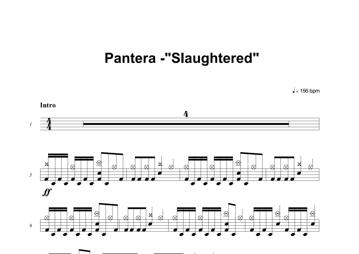 Pantera《Slaughtered》架子鼓谱