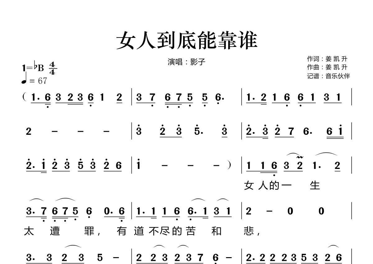 女人到底能靠谁简谱 - 影子演唱