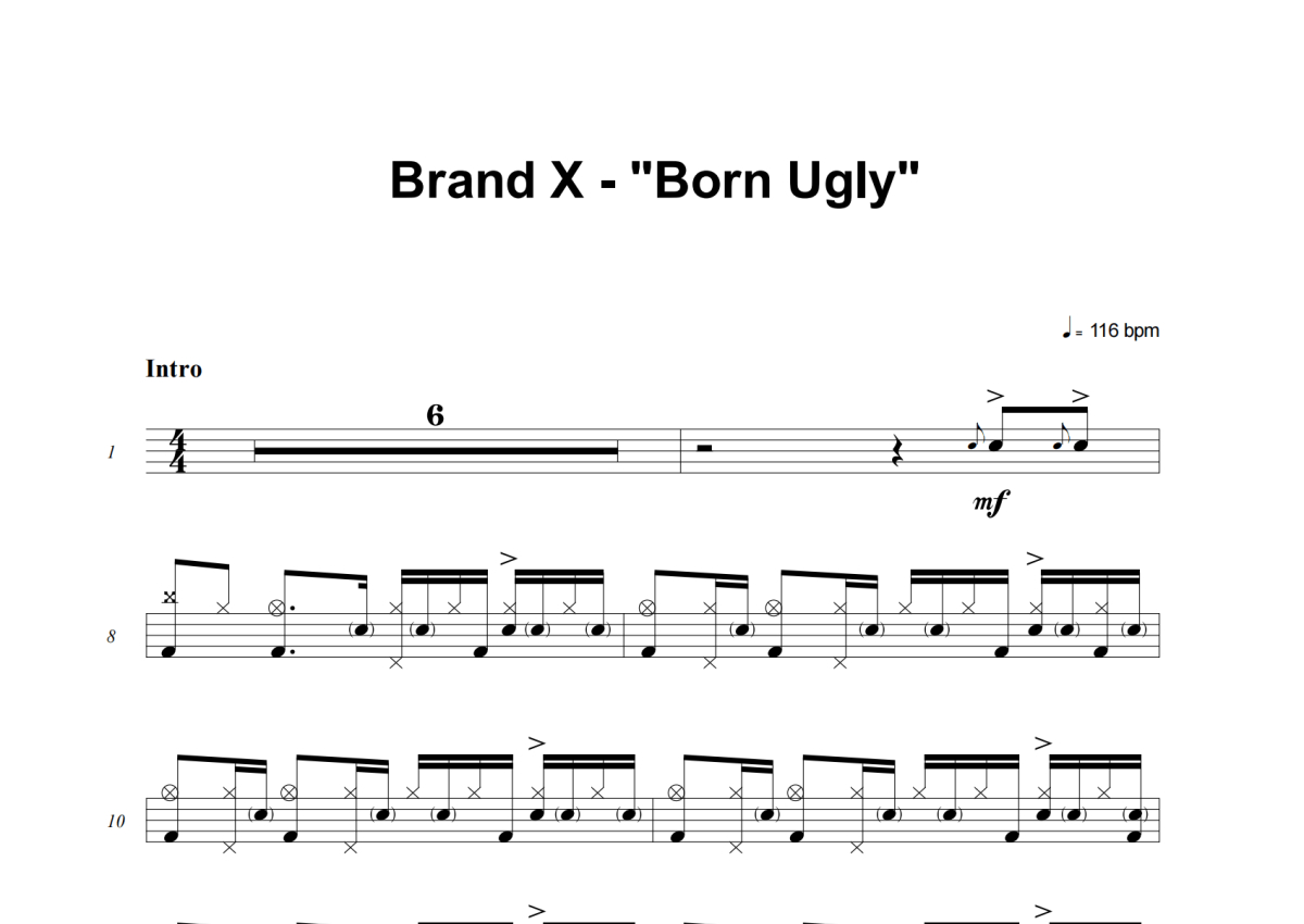 《Born Ugly》是Brand X演唱的一首歌曲,这份架子鼓谱共有十三张高清图谱,图谱由 @举个例子 编配上传,图谱使用五线谱编配,使用这份Born Ugly架子鼓谱,你将能够轻松地敲打出这首Brand X的Born Ugly,快来尝试吧。
