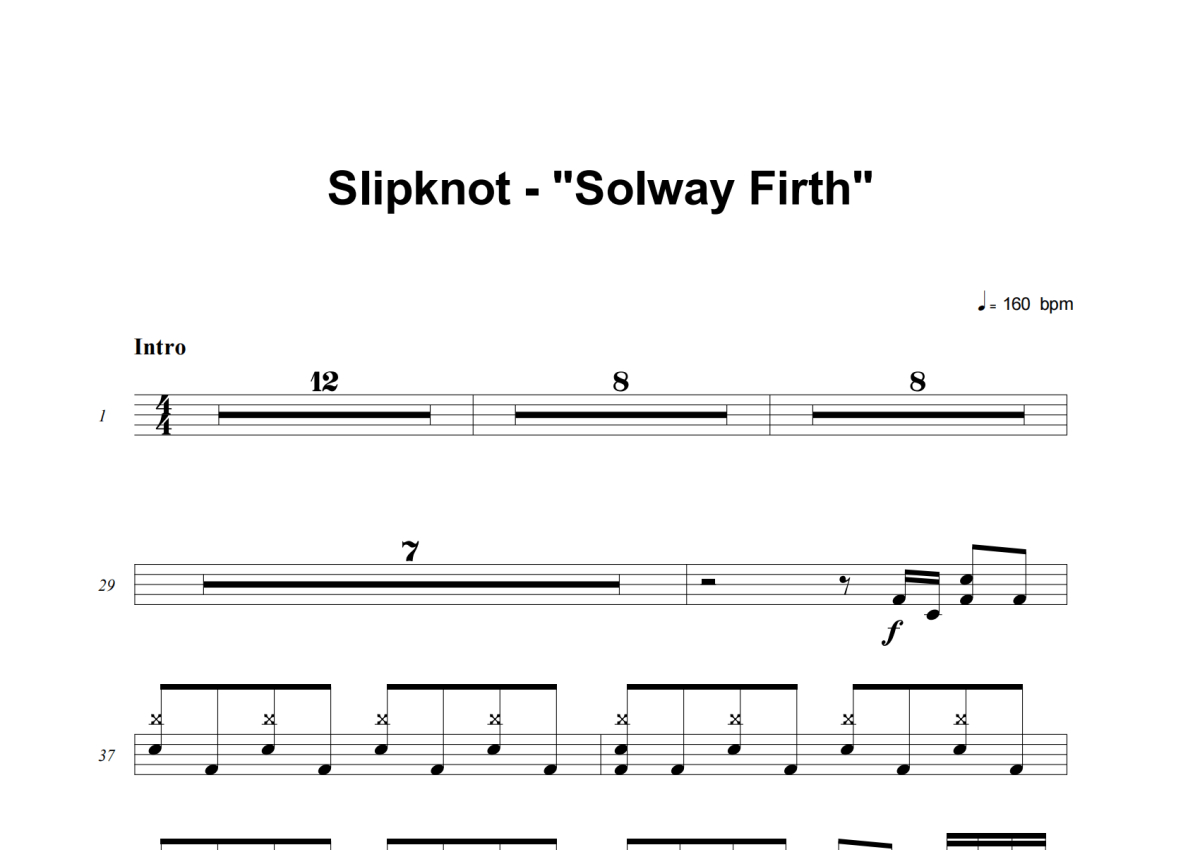 《Solway Firth》是Slipknot演唱的一首歌曲,这份架子鼓谱共有十张高清图谱,图谱由 @举个例子 编配上传,图谱使用五线谱编配,使用这份Solway Firth架子鼓谱,你将能够轻松地敲打出这首Slipknot的Solway Firth,快来尝试吧。