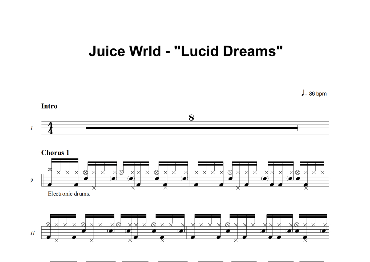 Juice Wrld《Lucid Dreams》架子鼓谱