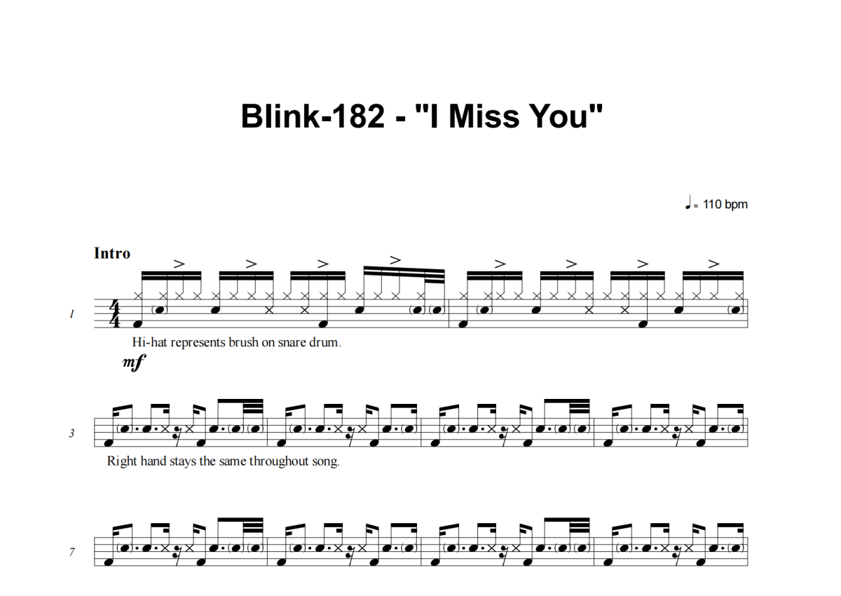 Blink-182《I Miss You》架子鼓谱