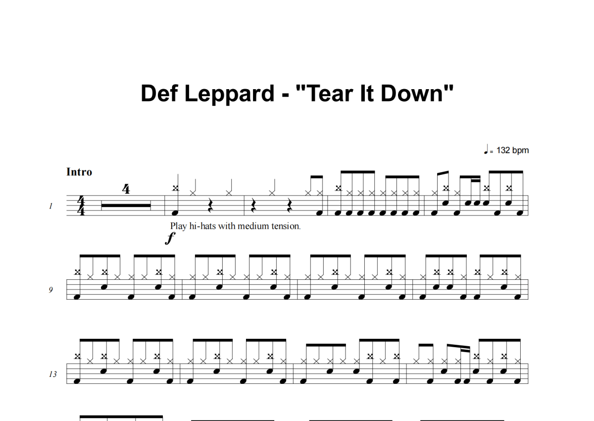 Def Leppard《Tear It Down》架子鼓谱
