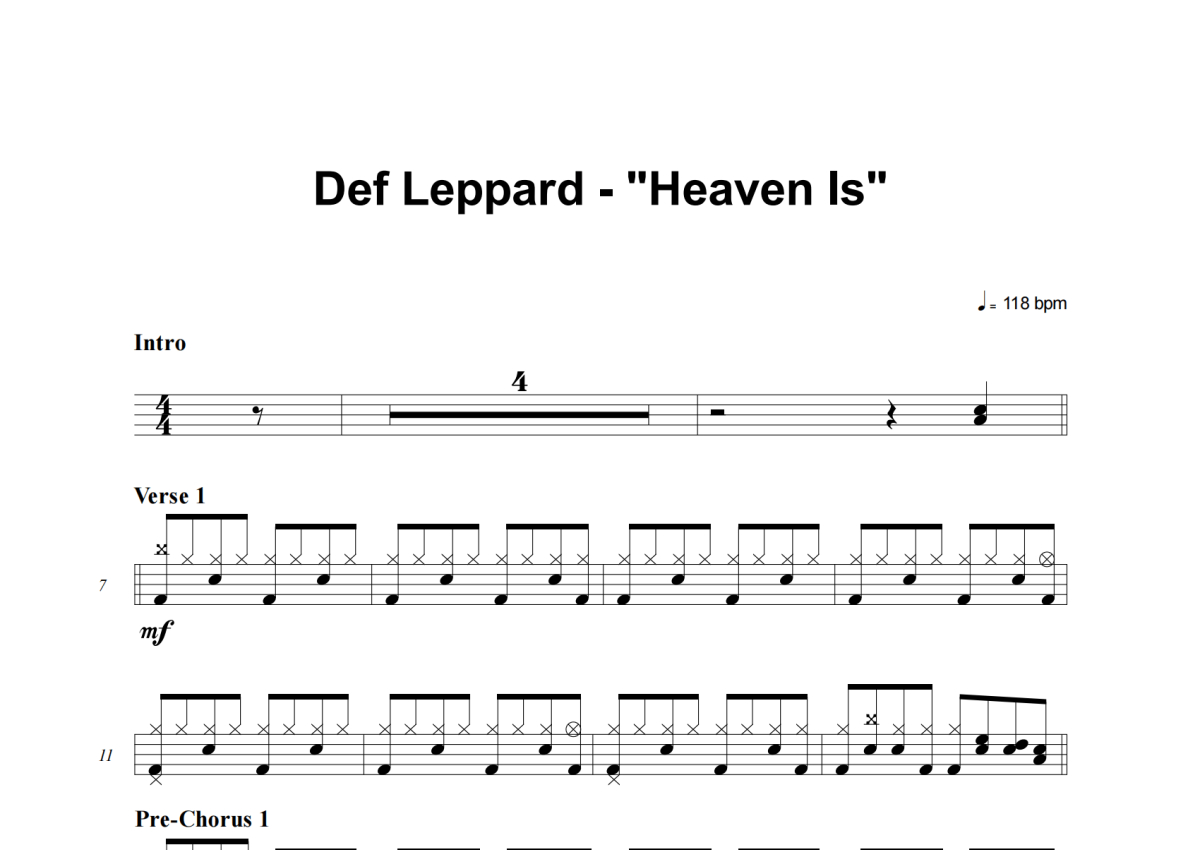 Def Leppard《Heaven Is》架子鼓谱