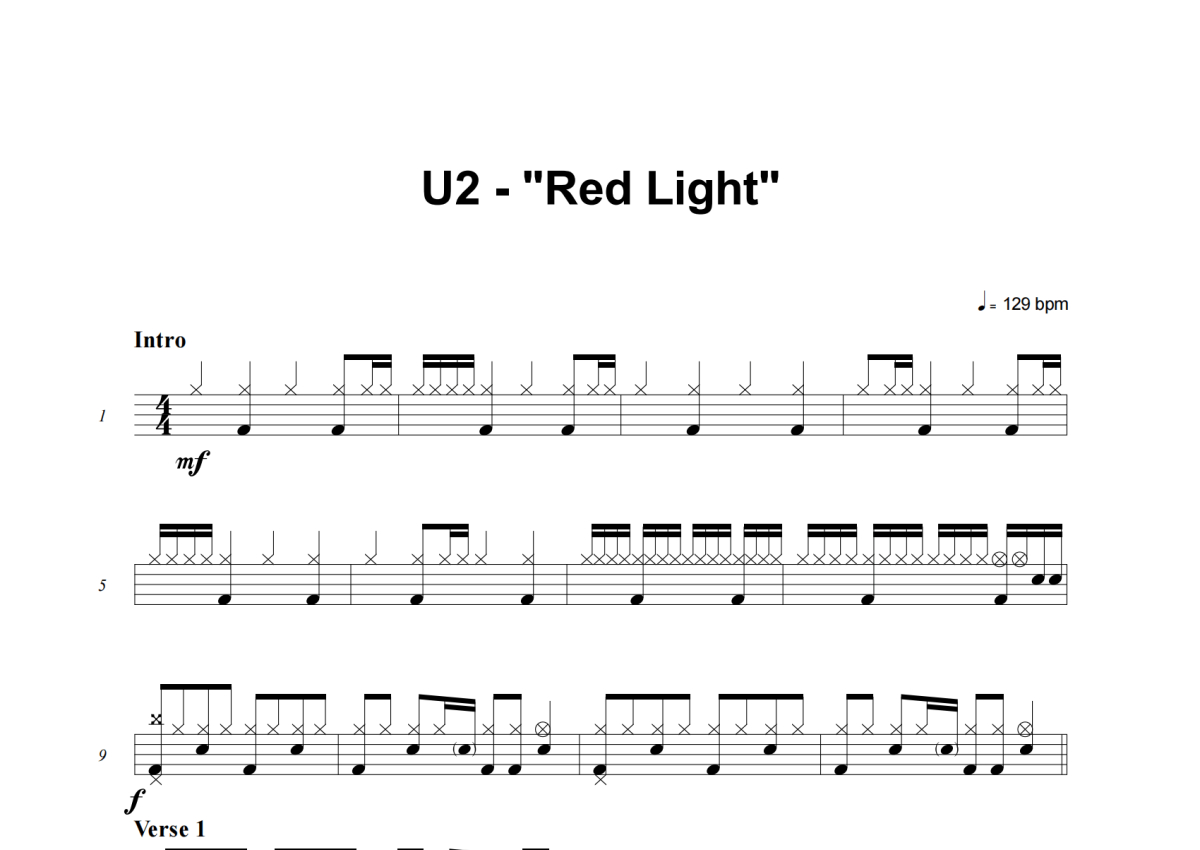 U2《Red Light》架子鼓谱