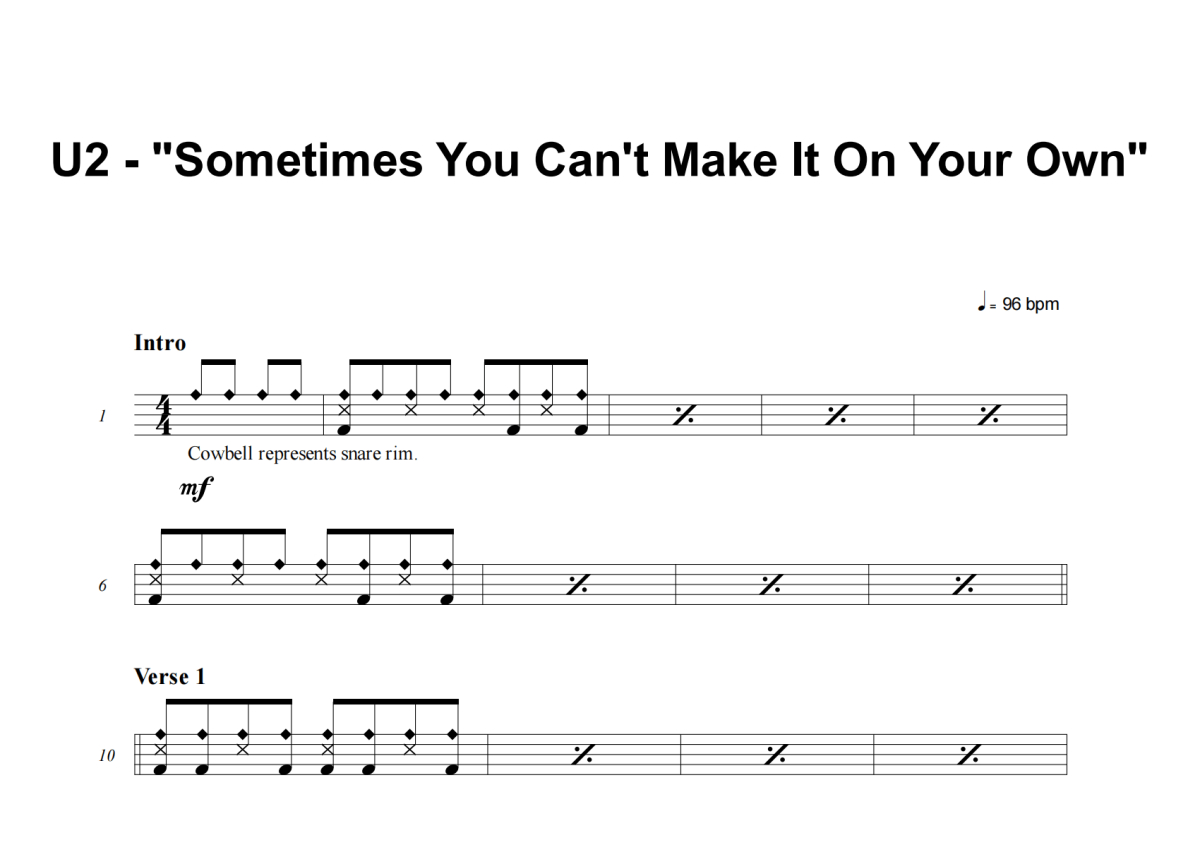 U2《Sometimes You Can't Make It On Your Own》架子鼓谱