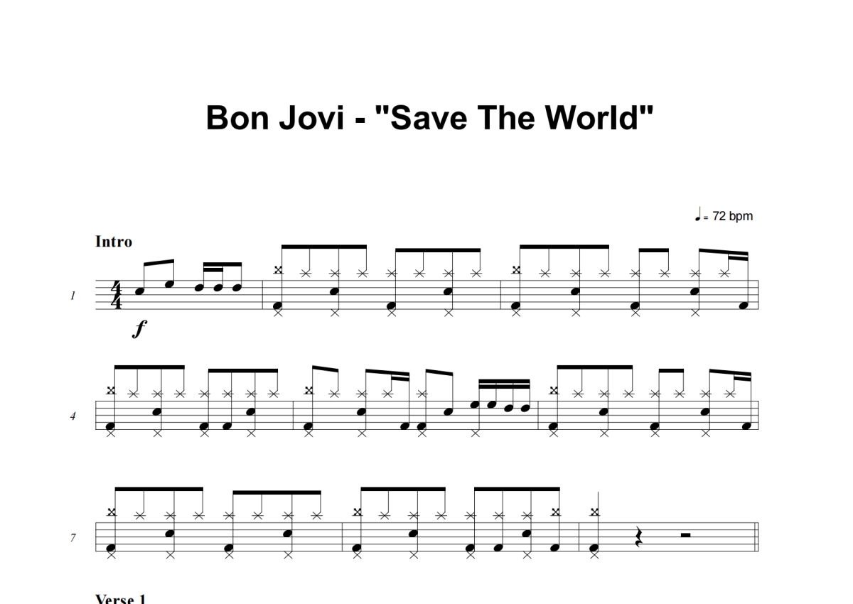 Bon Jovi《Save The World》架子鼓谱