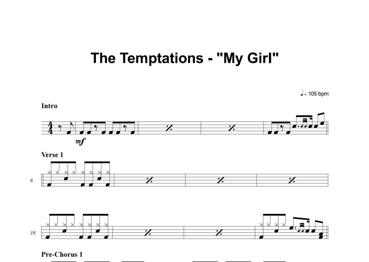My Girl架子鼓谱 - The Temptations演唱