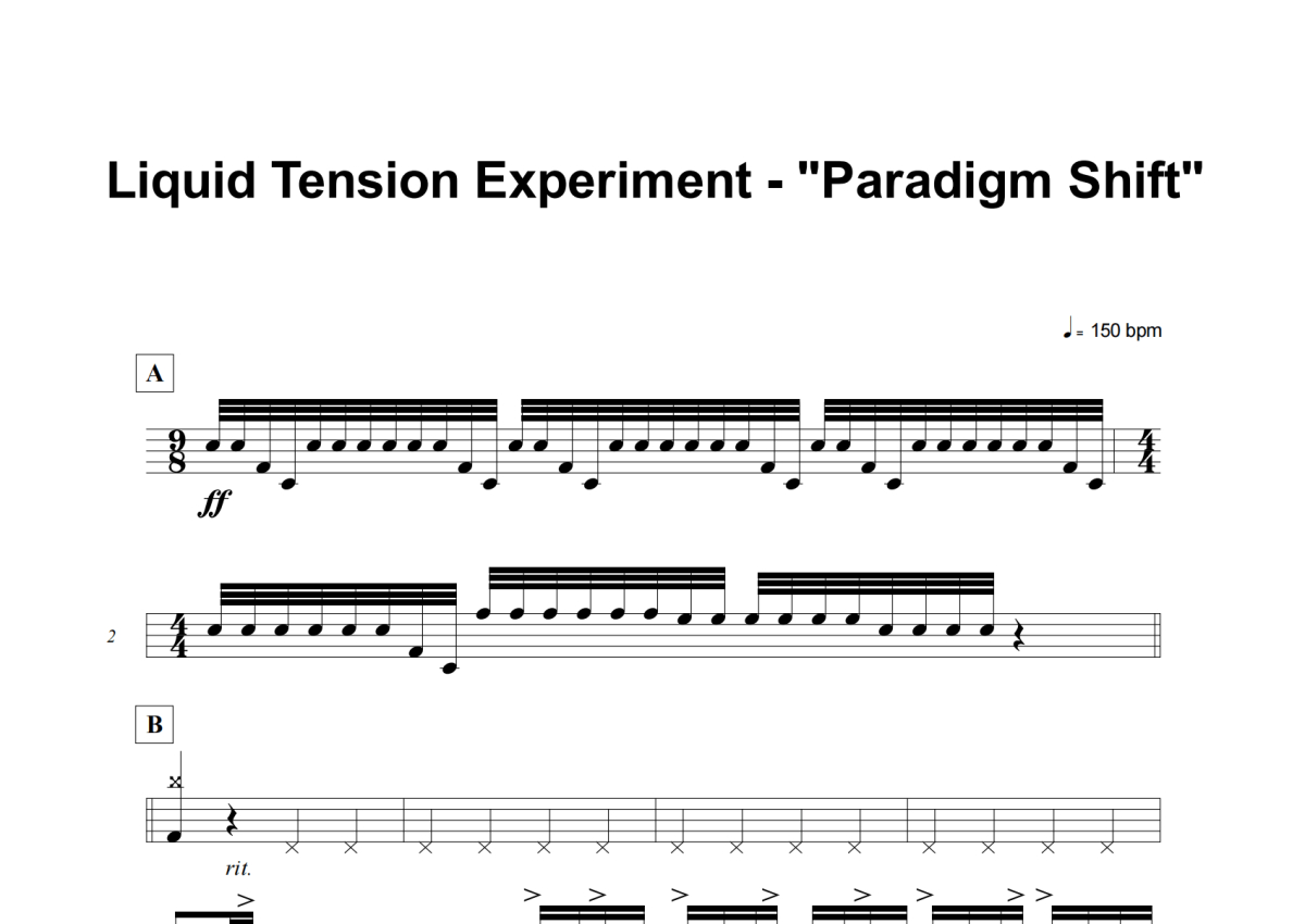 《Paradigm Shift》是Liquid Tension Experiment演唱的一首歌曲,这份架子鼓谱共有十二张高清图谱,图谱由 @举个例子 编配上传,图谱使用五线谱编配,使用这份Paradigm Shift架子鼓谱,你将能够轻松地敲打出这首Liquid Tension Experiment的Paradigm Shift,快来尝试吧。