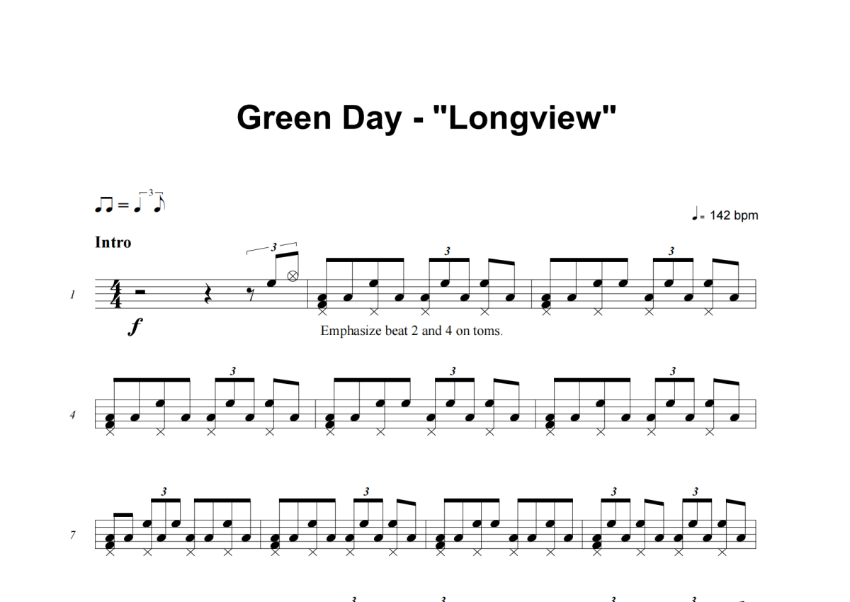 Green Day《Longview》架子鼓谱