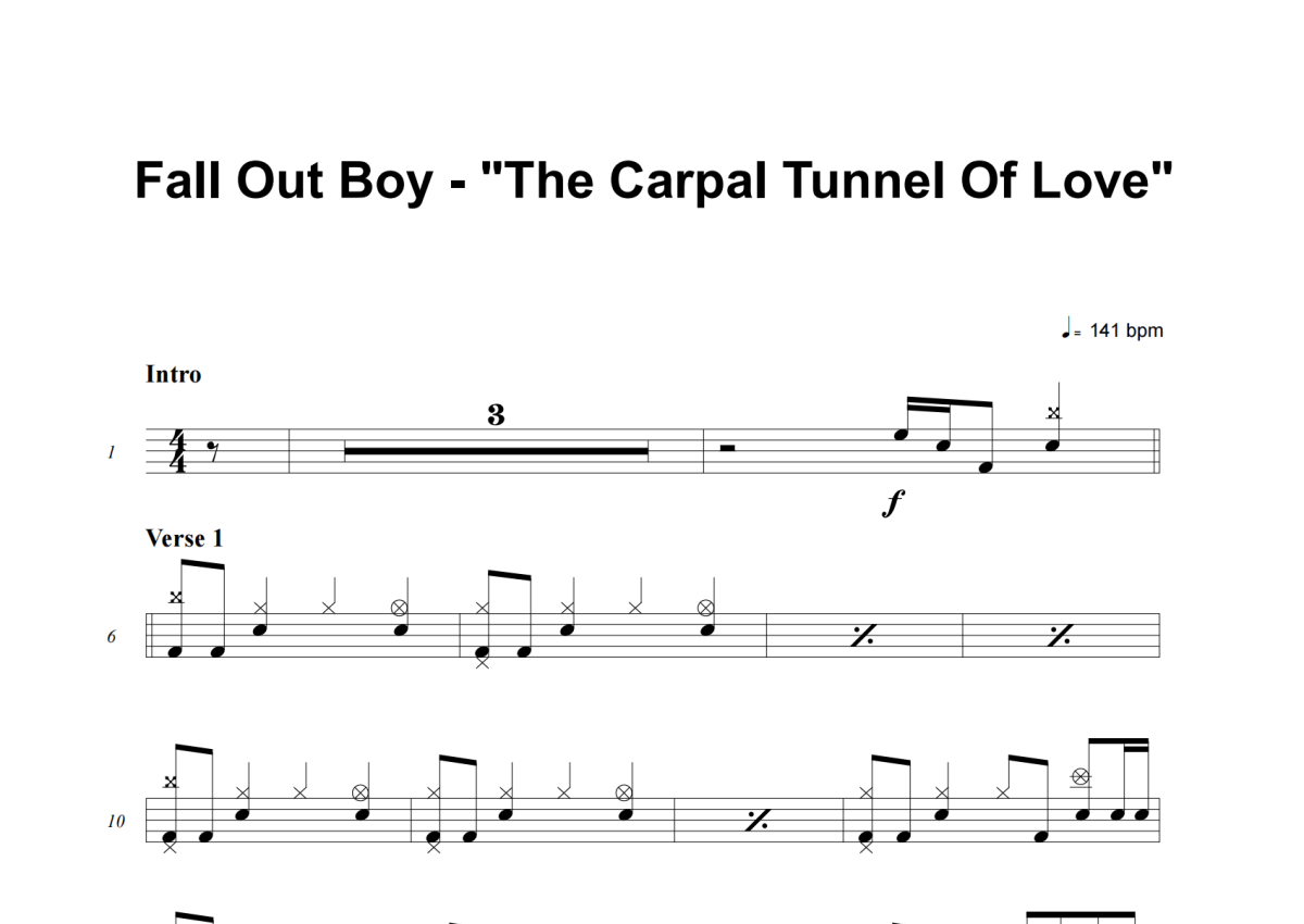 The Carpal Tunnel Of Love架子鼓谱 - Fall Out Boy演唱