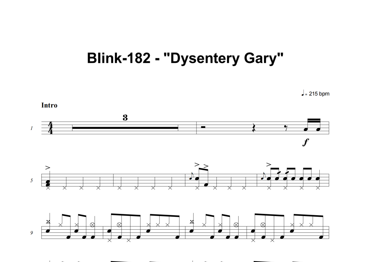 Blink-182《Dysentery Gary》架子鼓谱
