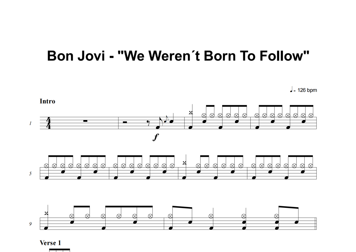 Bon Jovi《We Weren't Born To Follow》架子鼓谱