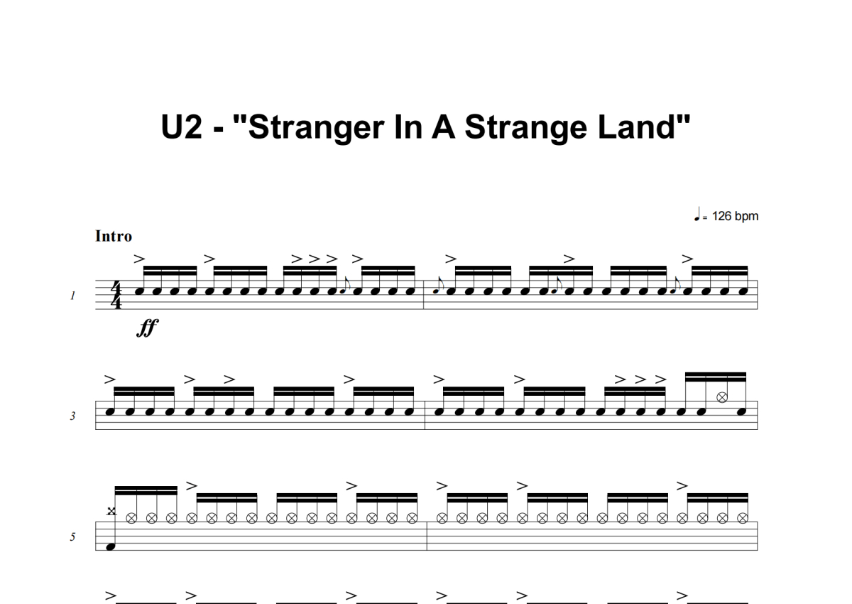 《Stranger In A Strange Land》是U2演唱的一首歌曲,这份架子鼓谱共有五张高清图谱,图谱由 @举个例子 编配上传,图谱使用五线谱编配,使用这份Stranger In A Strange Land架子鼓谱,你将能够轻松地敲打出这首U2的Stranger In A Strange Land,快来尝试吧。