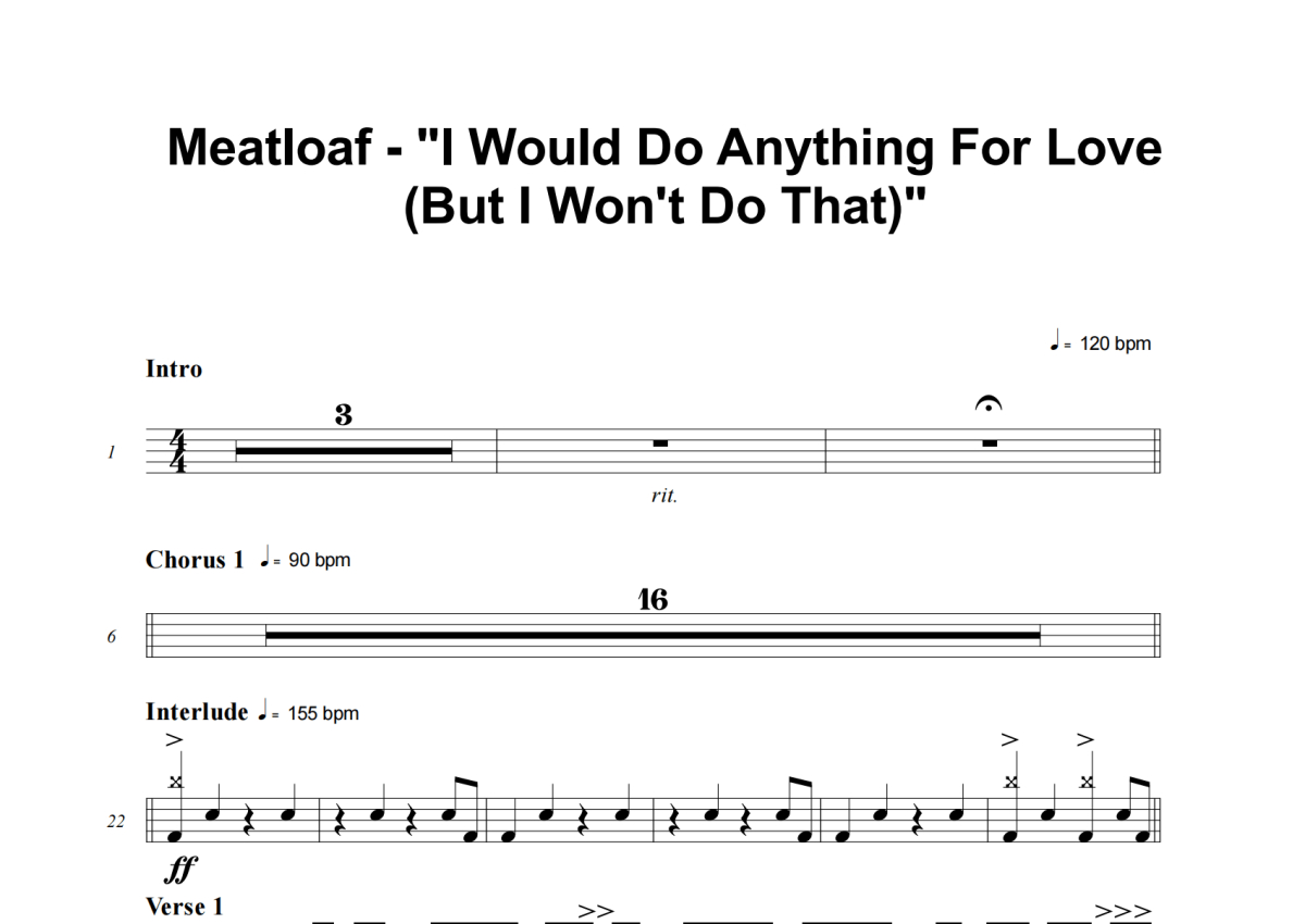 Meat Loaf《I'd Do Anything For Love (But I Won't Do That)》架子鼓谱