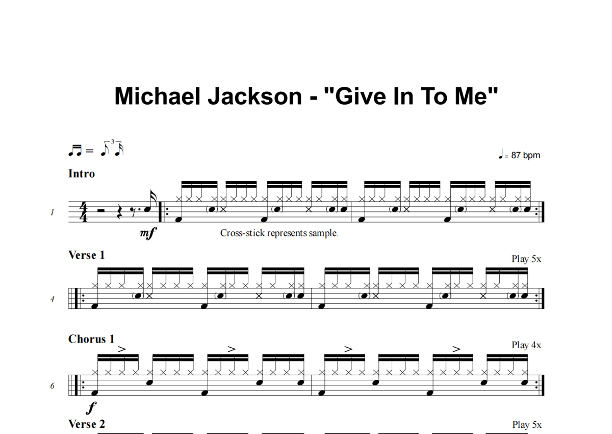 Michael Jackson《Give In To Me》架子鼓谱