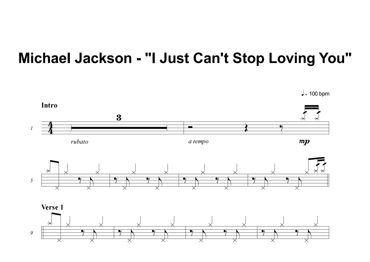 Michael Jackson《I Just Can't Stop Loving You》架子鼓谱