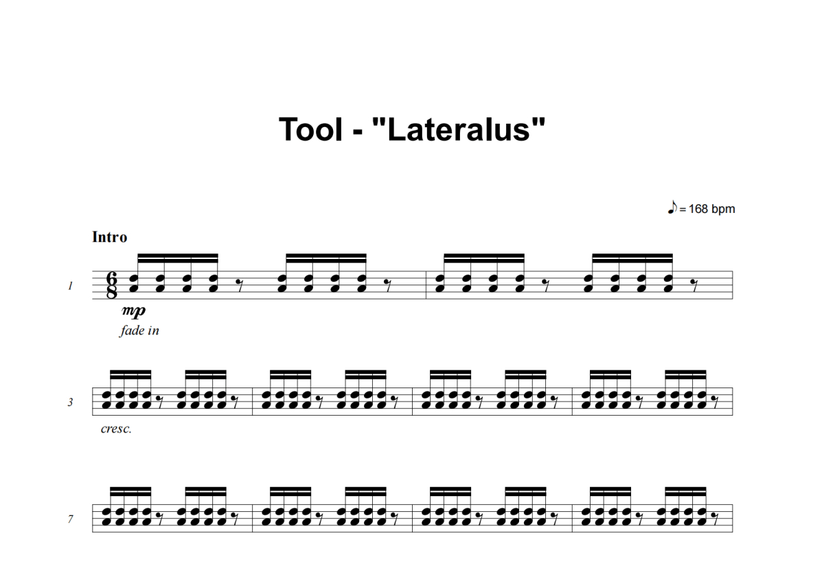 《Lateralus with 4-4》是Tool演唱的一首歌曲,这份架子鼓谱共有十四张高清图谱,图谱由 @举个例子 编配上传,图谱使用五线谱编配,使用这份Lateralus with 4-4架子鼓谱,你将能够轻松地敲打出这首Tool的Lateralus with 4-4,快来尝试吧。
