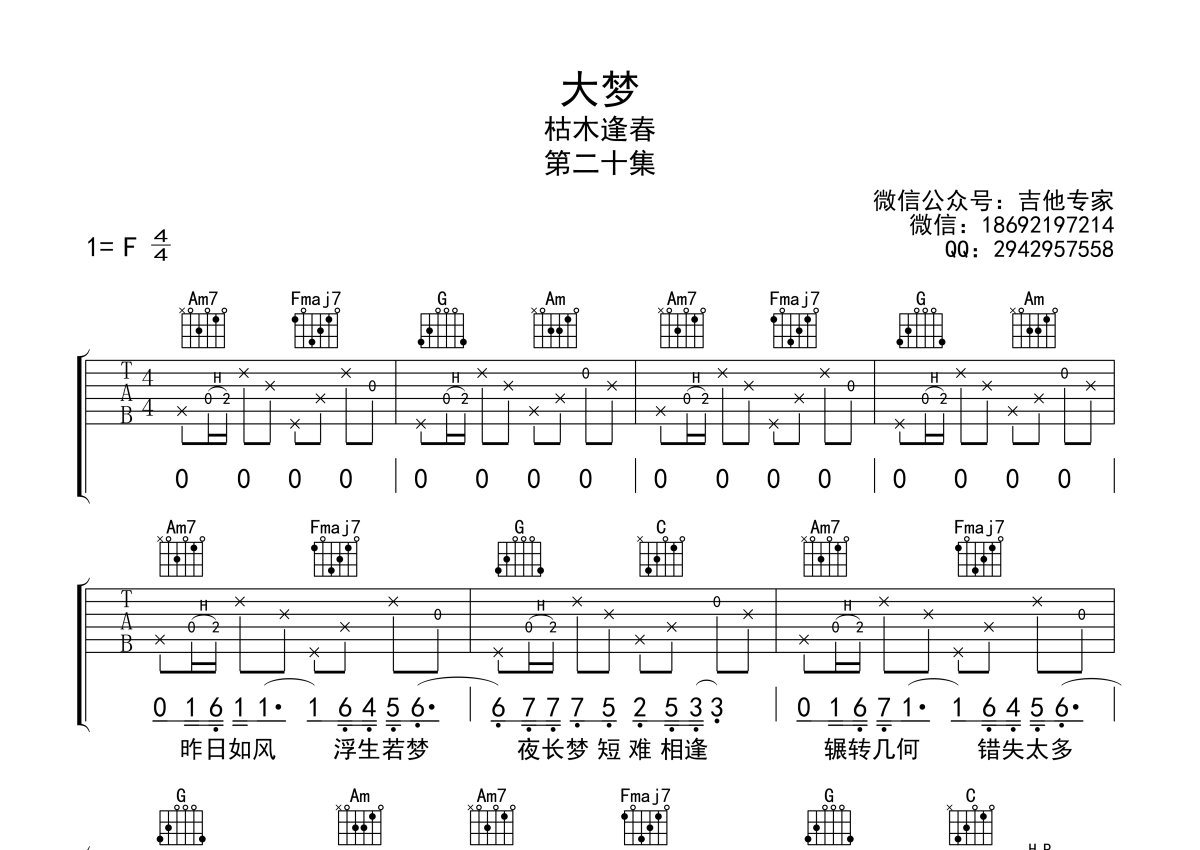 枯木逢春《大梦》吉他谱 - C调弹唱六线谱