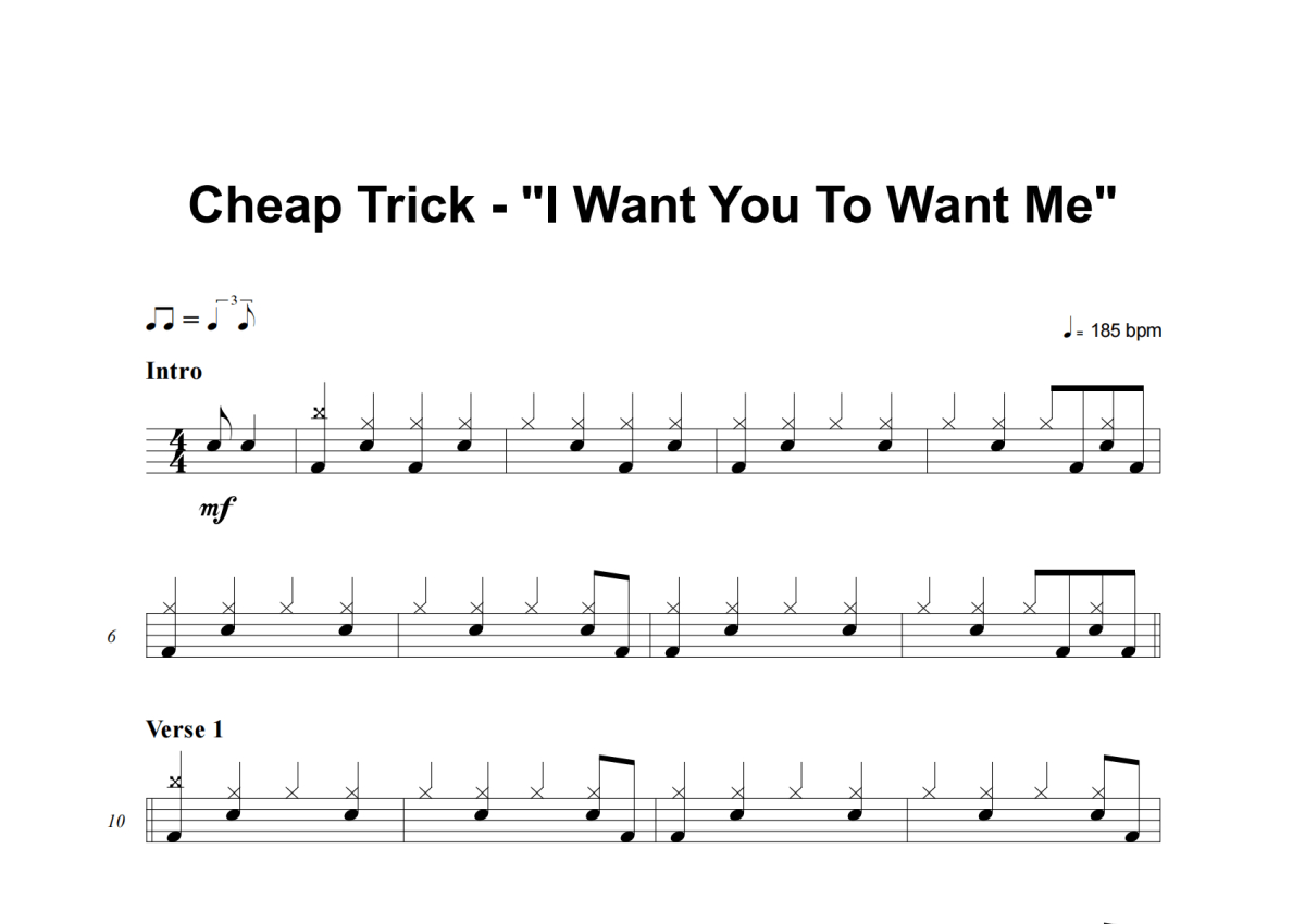 Cheap Trick《I Want You To Want Me》架子鼓谱