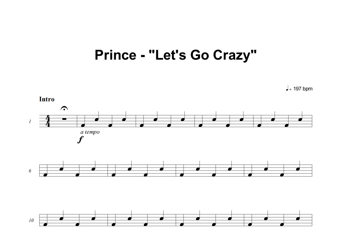 Prince《Let's Go Crazy》架子鼓谱