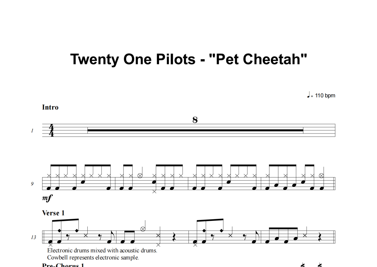 Twenty One Pilots《Pet Cheetah》架子鼓谱