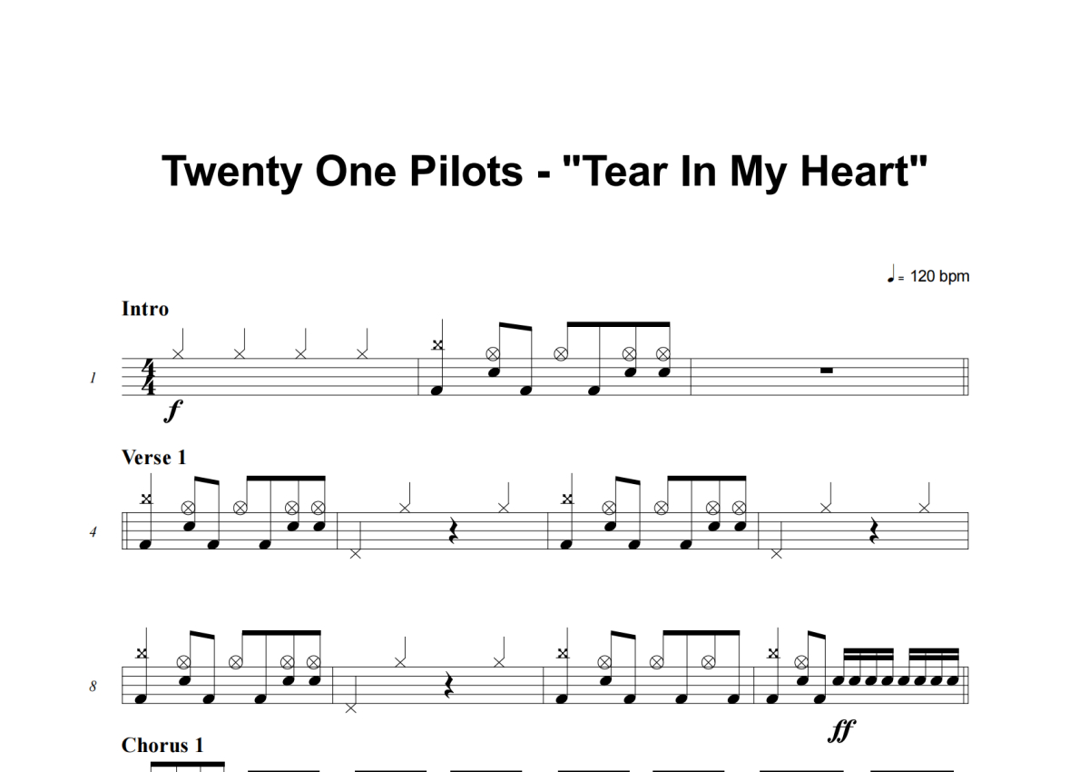 Twenty One Pilots《Tear In My Heart》架子鼓谱