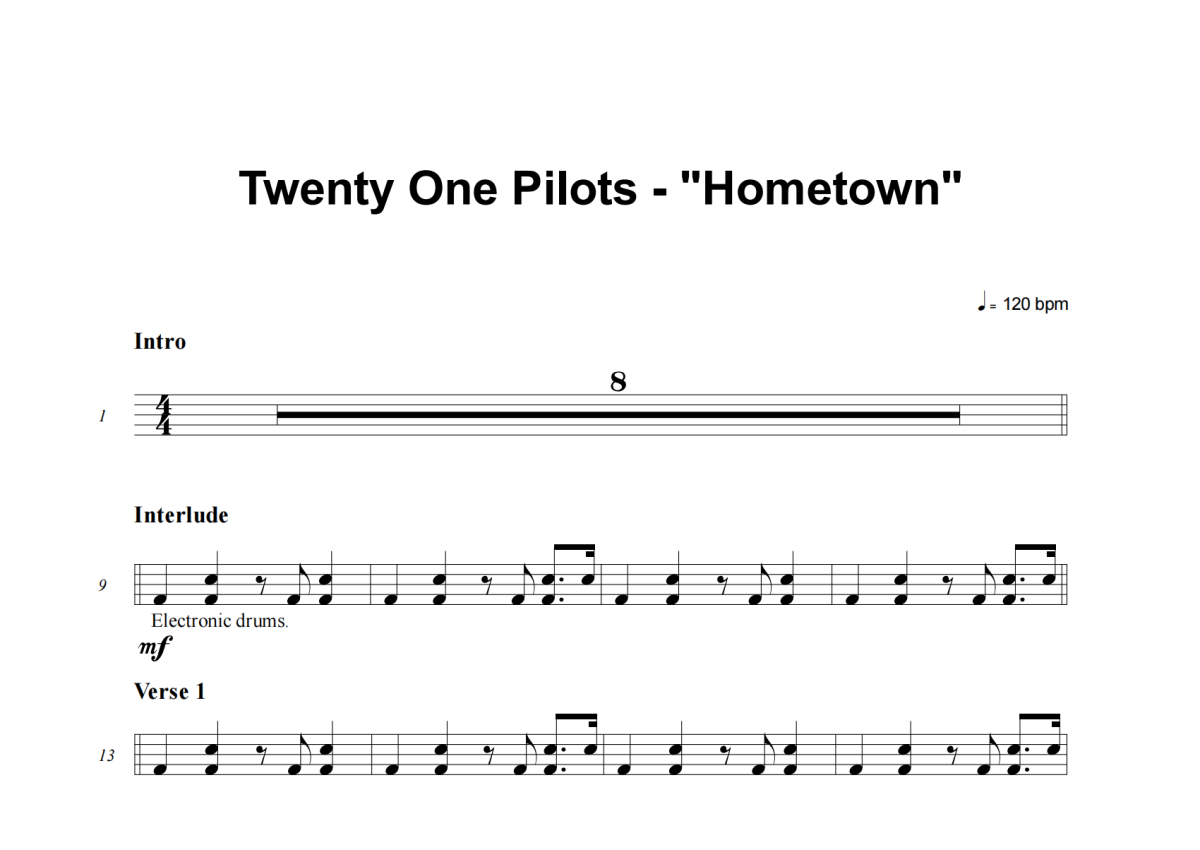 Twenty One Pilots《Hometown》架子鼓谱