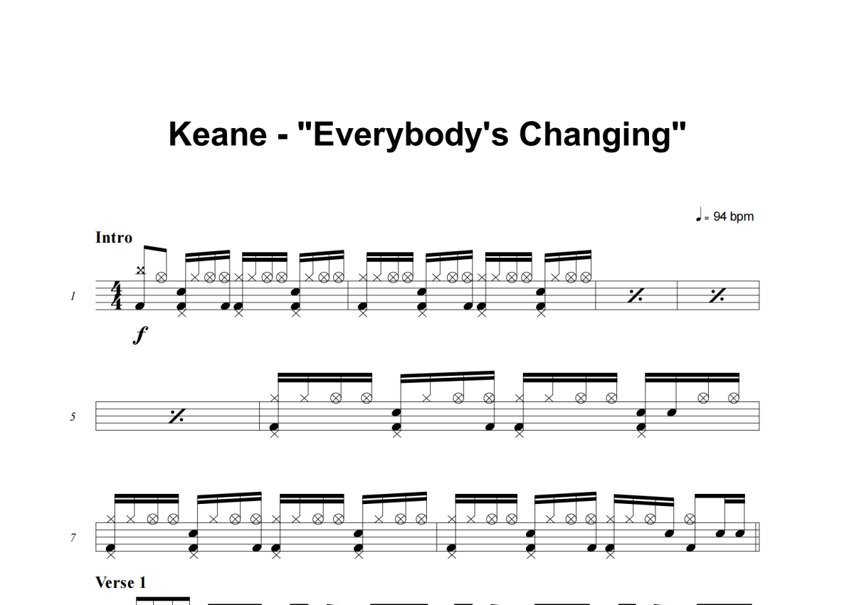 Keane《Everybody's Changing》架子鼓谱