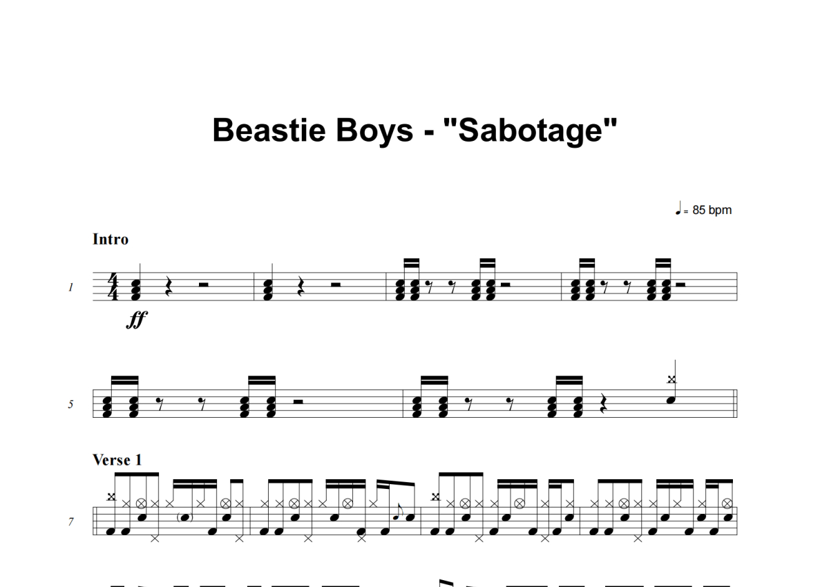 《Sabotage》是Beastie Boys演唱的一首歌曲,这份架子鼓谱共有两张高清图谱,图谱由 @举个例子 编配上传,图谱使用五线谱编配,使用这份Sabotage架子鼓谱,你将能够轻松地敲打出这首Beastie Boys的Sabotage,快来尝试吧。