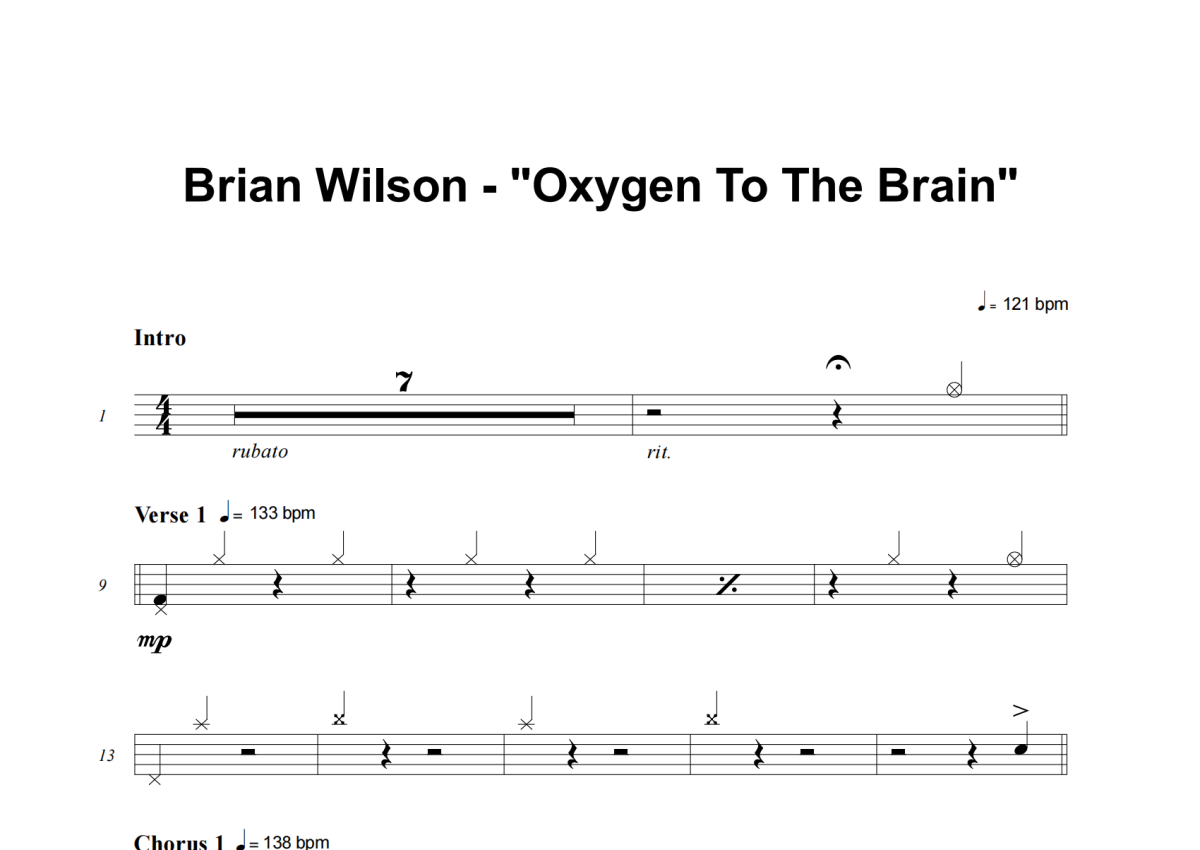 Brian Wilson《Oxygen To The Brain》架子鼓谱