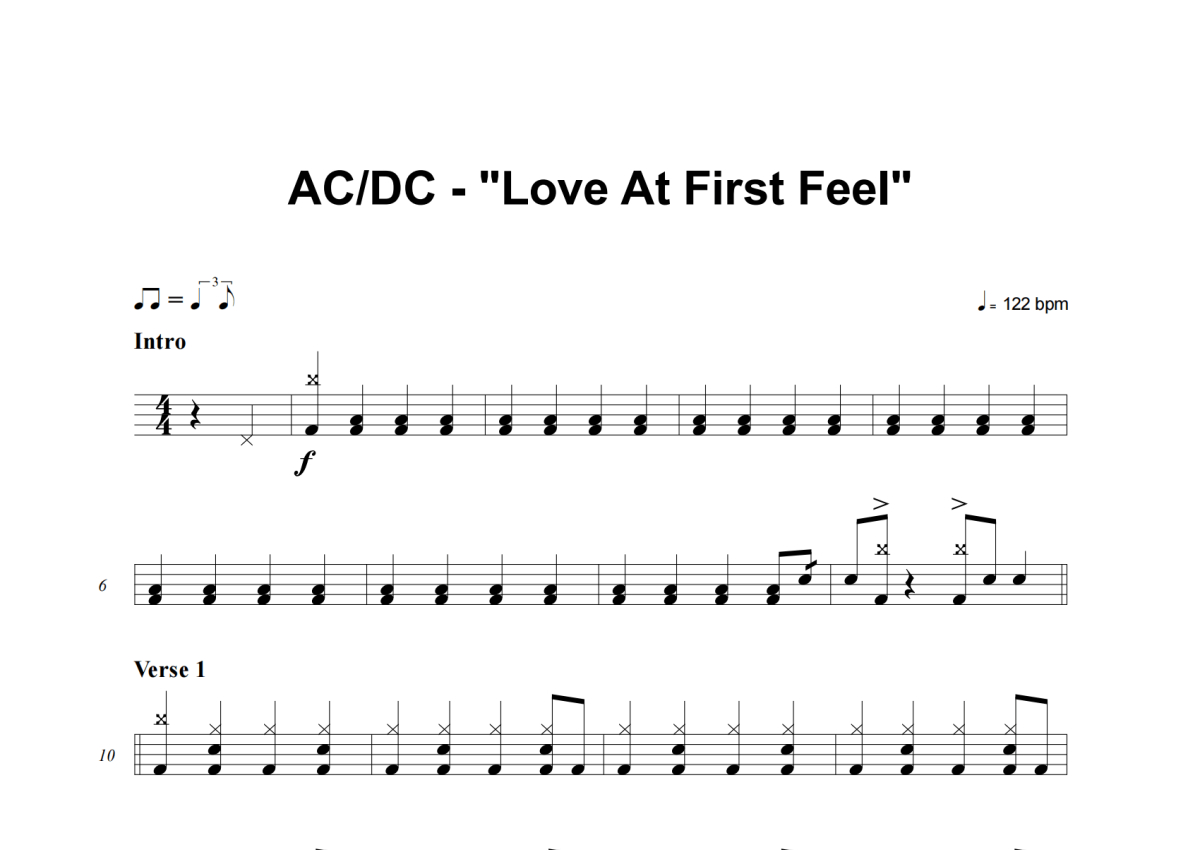 《Love At First Feel》是AC_DC演唱的一首歌曲,这份架子鼓谱共有三张高清图谱,图谱由 @举个例子 编配上传,图谱使用五线谱编配,使用这份Love At First Feel架子鼓谱,你将能够轻松地敲打出这首AC_DC的Love At First Feel,快来尝试吧。