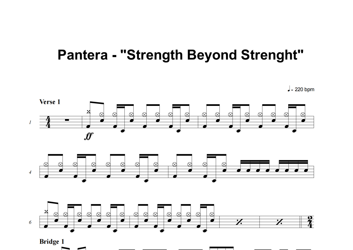 Pantera《Strength Beyond Strength》架子鼓谱