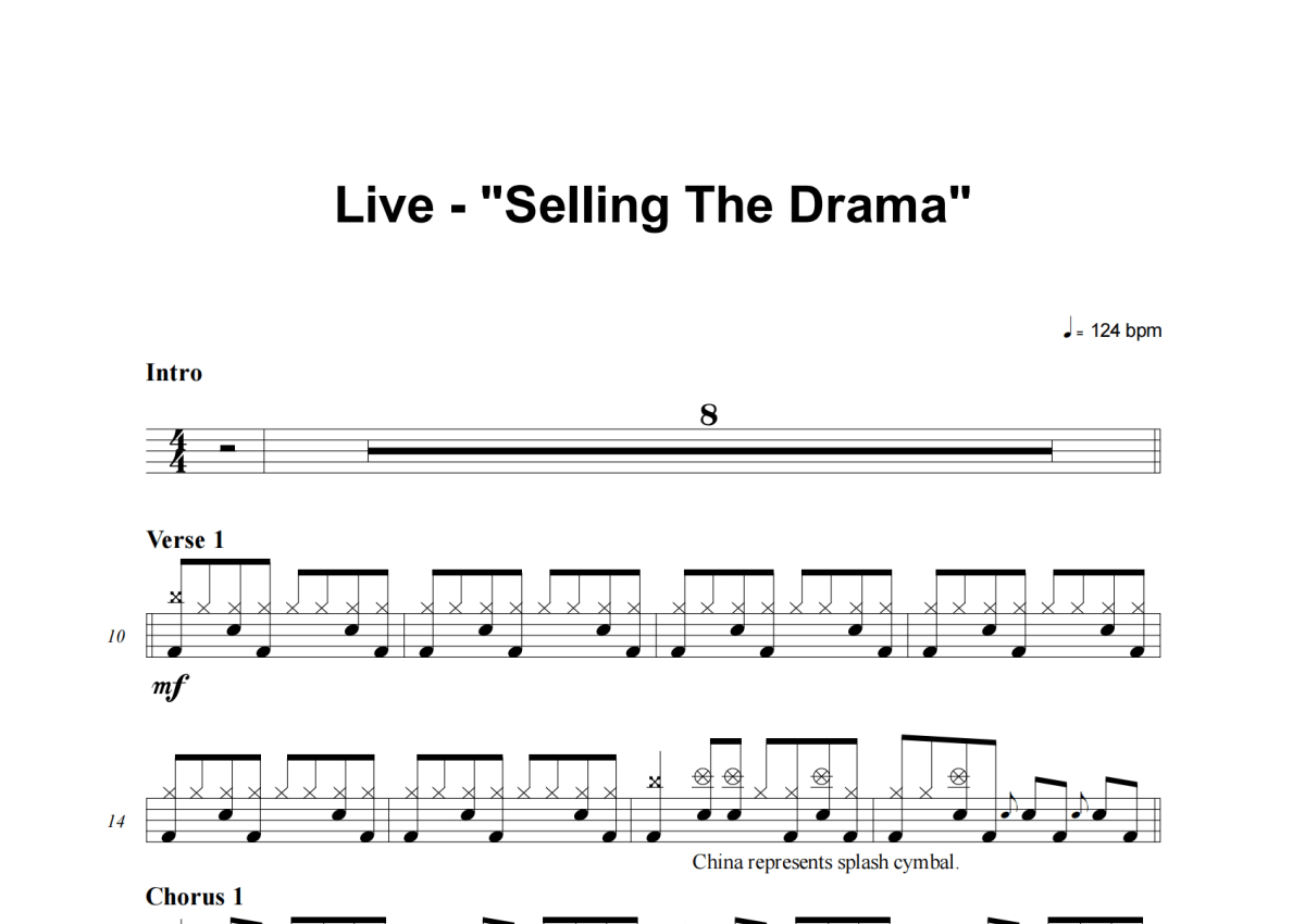 Live《Selling The Drama》架子鼓谱