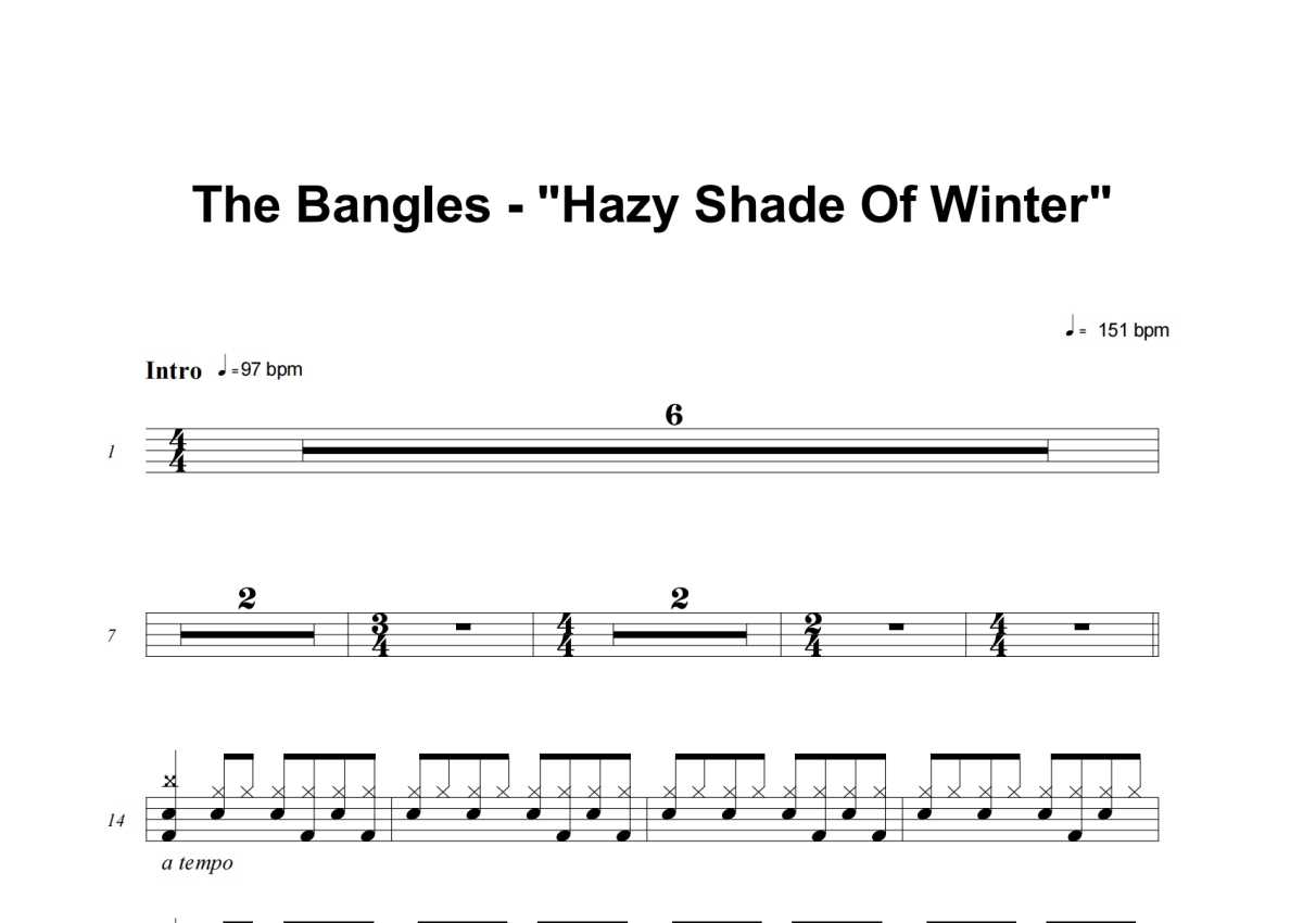 The Bangles《Hazy Shade Of Winter》架子鼓谱