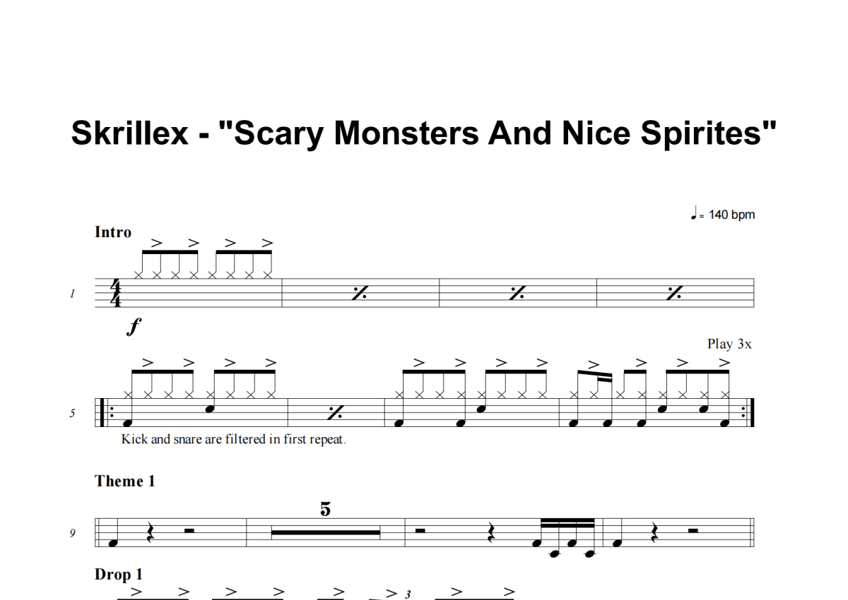 Skrillex《Scary Monsters And Nice Spirits》架子鼓谱