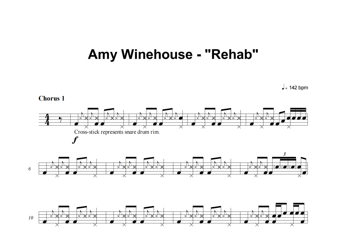Amy Winehouse《Rehab》架子鼓谱
