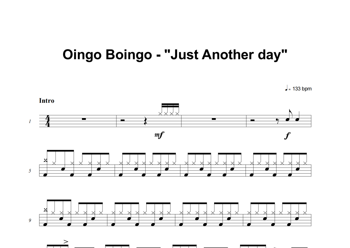 Oingo Boingo《Just Another Day》架子鼓谱