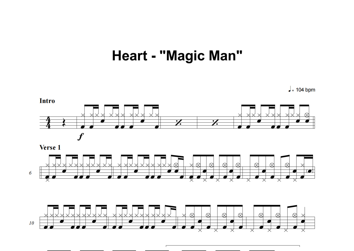 《Magic Man》是Heart演唱的一首歌曲,这份架子鼓谱共有五张高清图谱,图谱由 @积极处世 编配上传,图谱使用五线谱编配,使用这份Magic Man架子鼓谱,你将能够轻松地敲打出这首Heart的Magic Man,快来尝试吧。