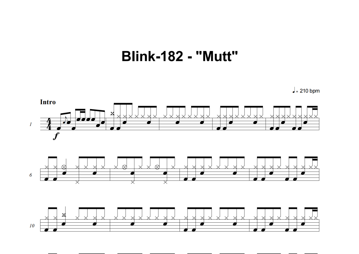 《Mutt》是Blink-182演唱的一首歌曲,这份架子鼓谱共有五张高清图谱,图谱由 @积极处世 编配上传,图谱使用五线谱编配,使用这份Mutt架子鼓谱,你将能够轻松地敲打出这首Blink-182的Mutt,快来尝试吧。