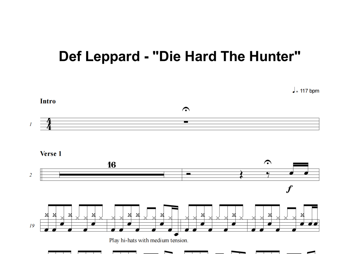 Def Leppard《Die Hard The Hunter》架子鼓谱