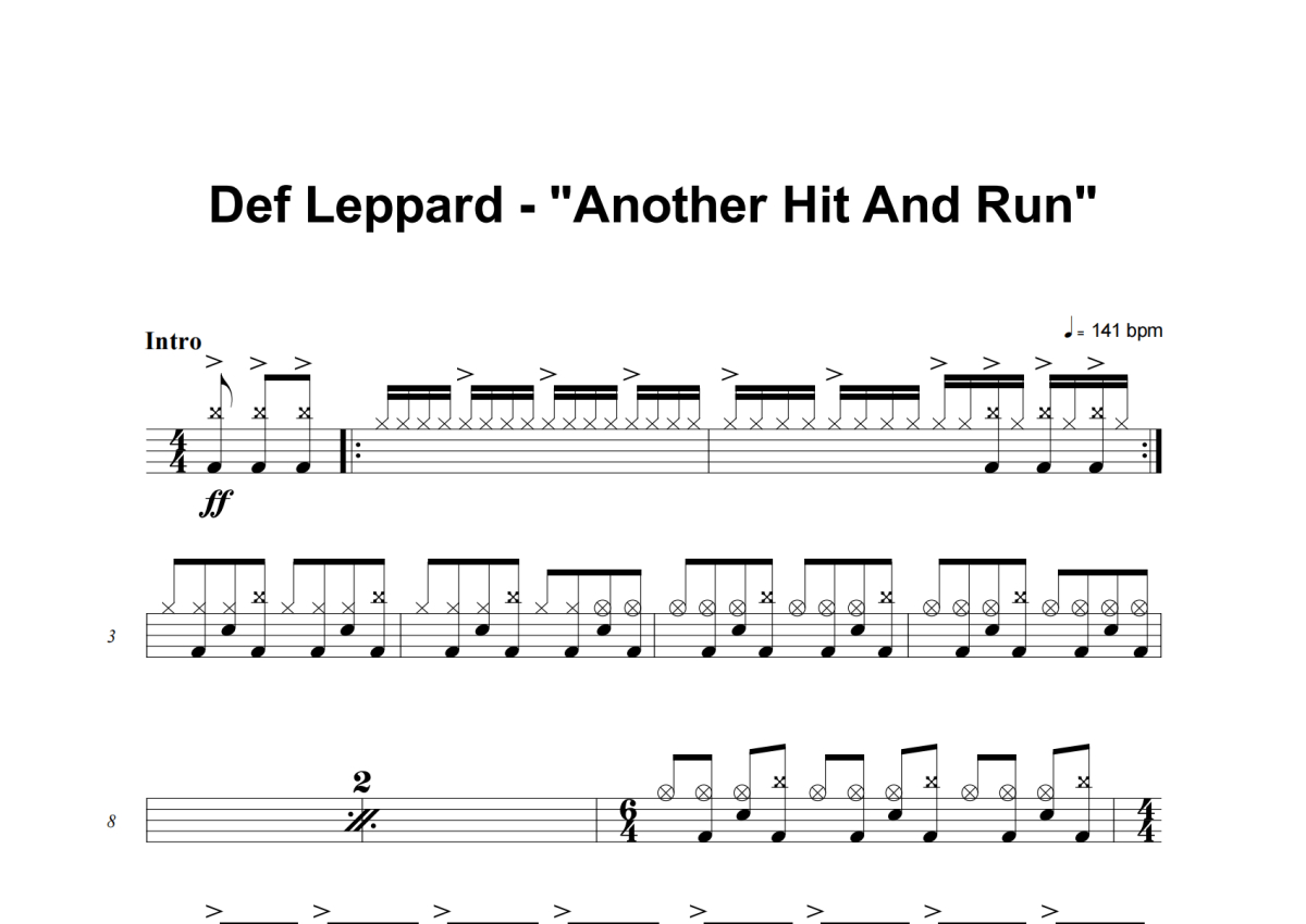 Def Leppard《Another Hit And Run》架子鼓谱