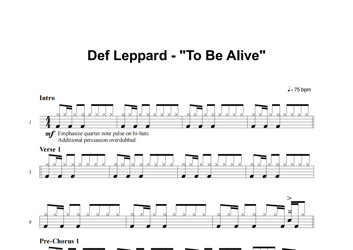 Def Leppard《To Be Alive》架子鼓谱