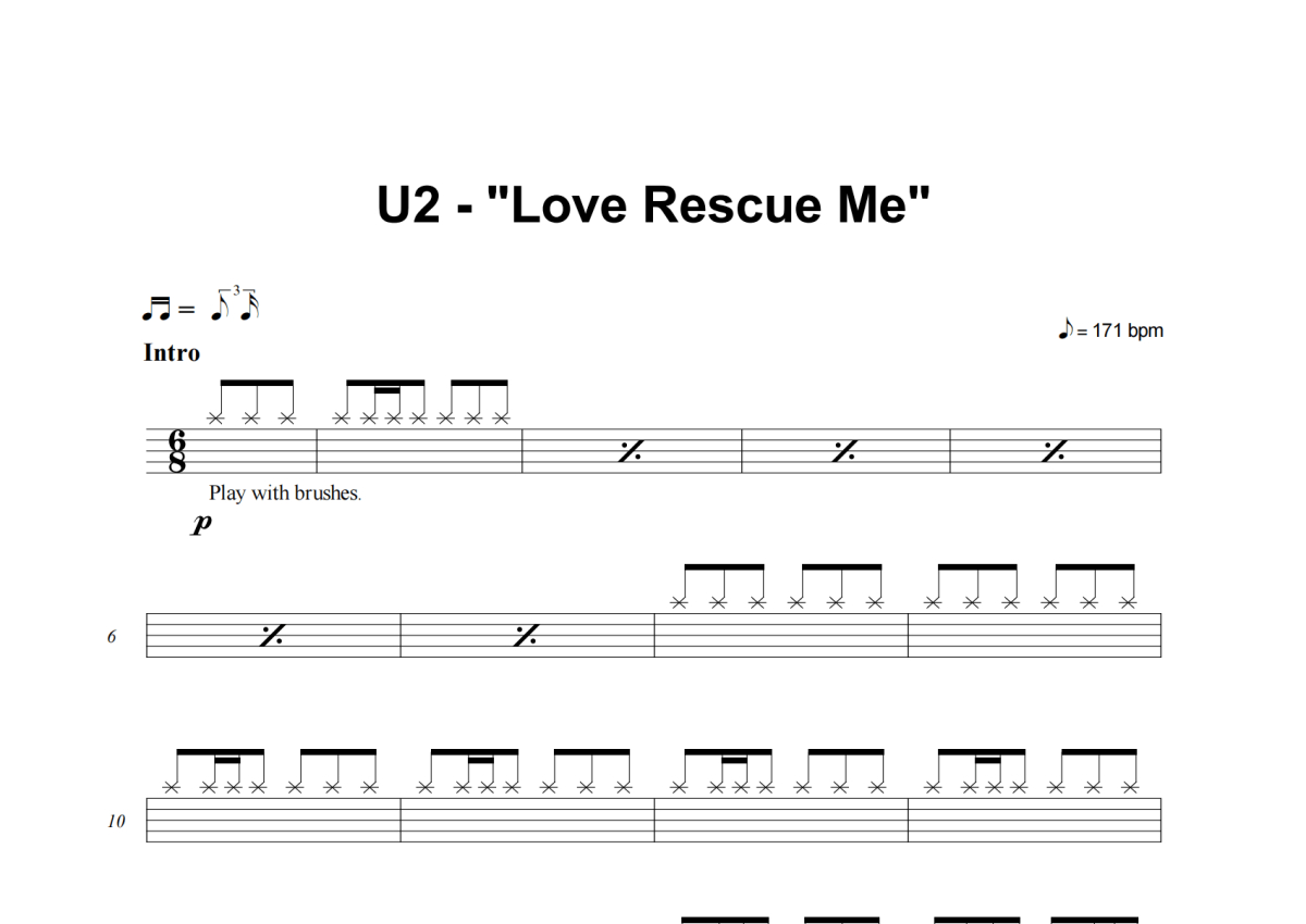 U2《Love Rescue Me》架子鼓谱