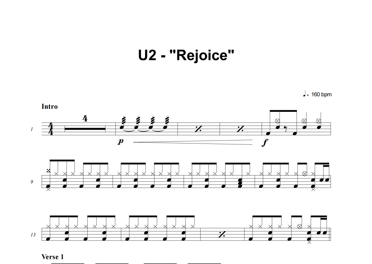 U2《Rejoice》架子鼓谱