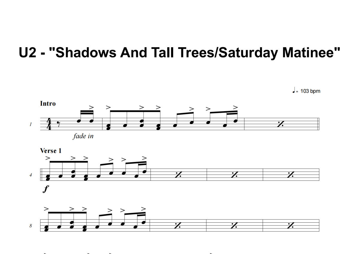 U2《Shadows And Tall Trees_Saturday Matinee》架子鼓谱