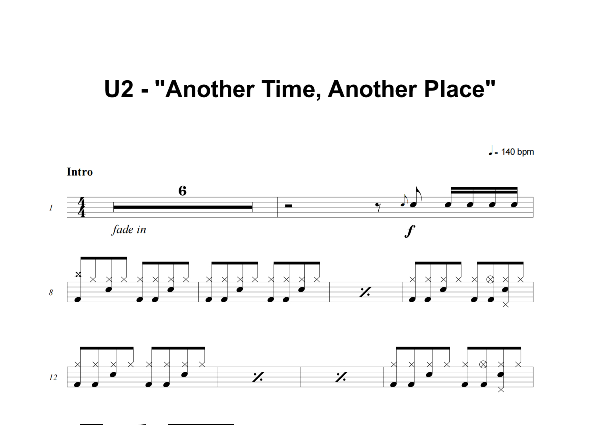 U2《Another Time, Another Place》架子鼓谱