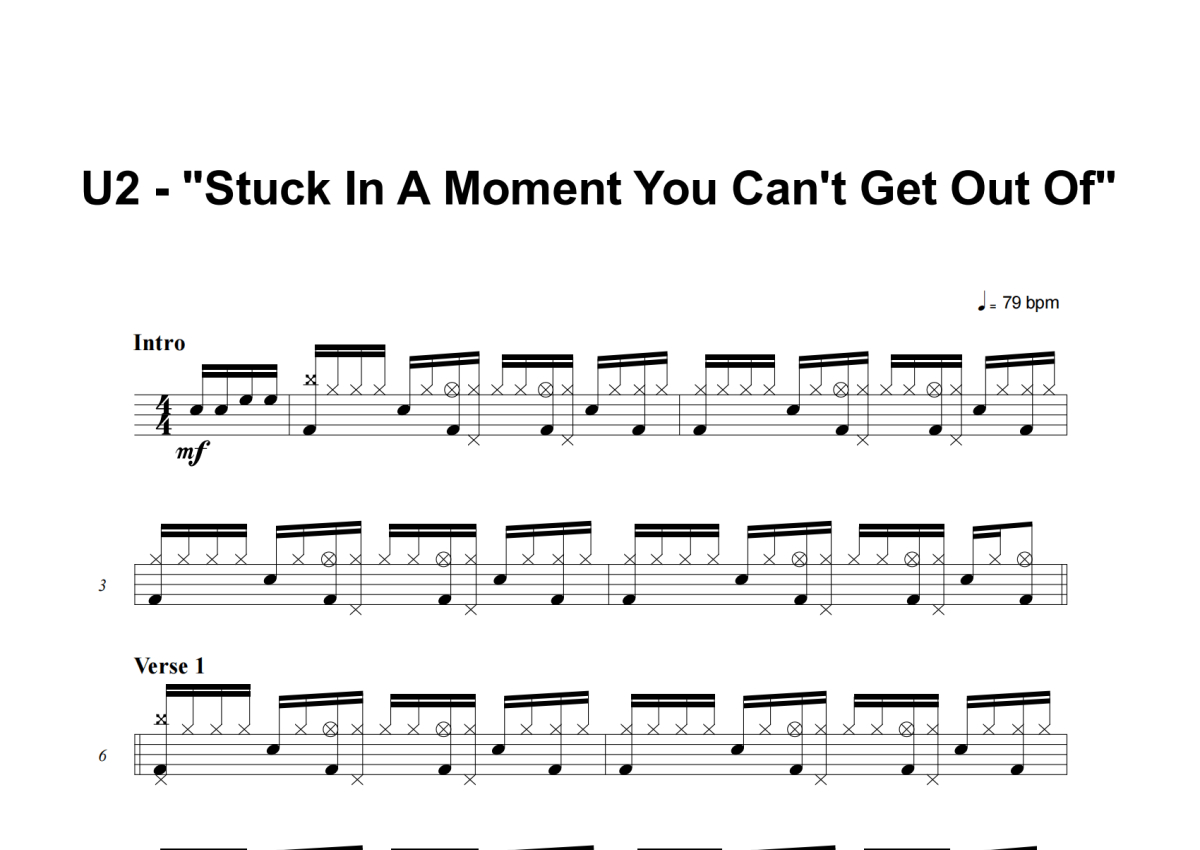 U2《Stuck In A Moment You Can’t Get Out Of》架子鼓谱