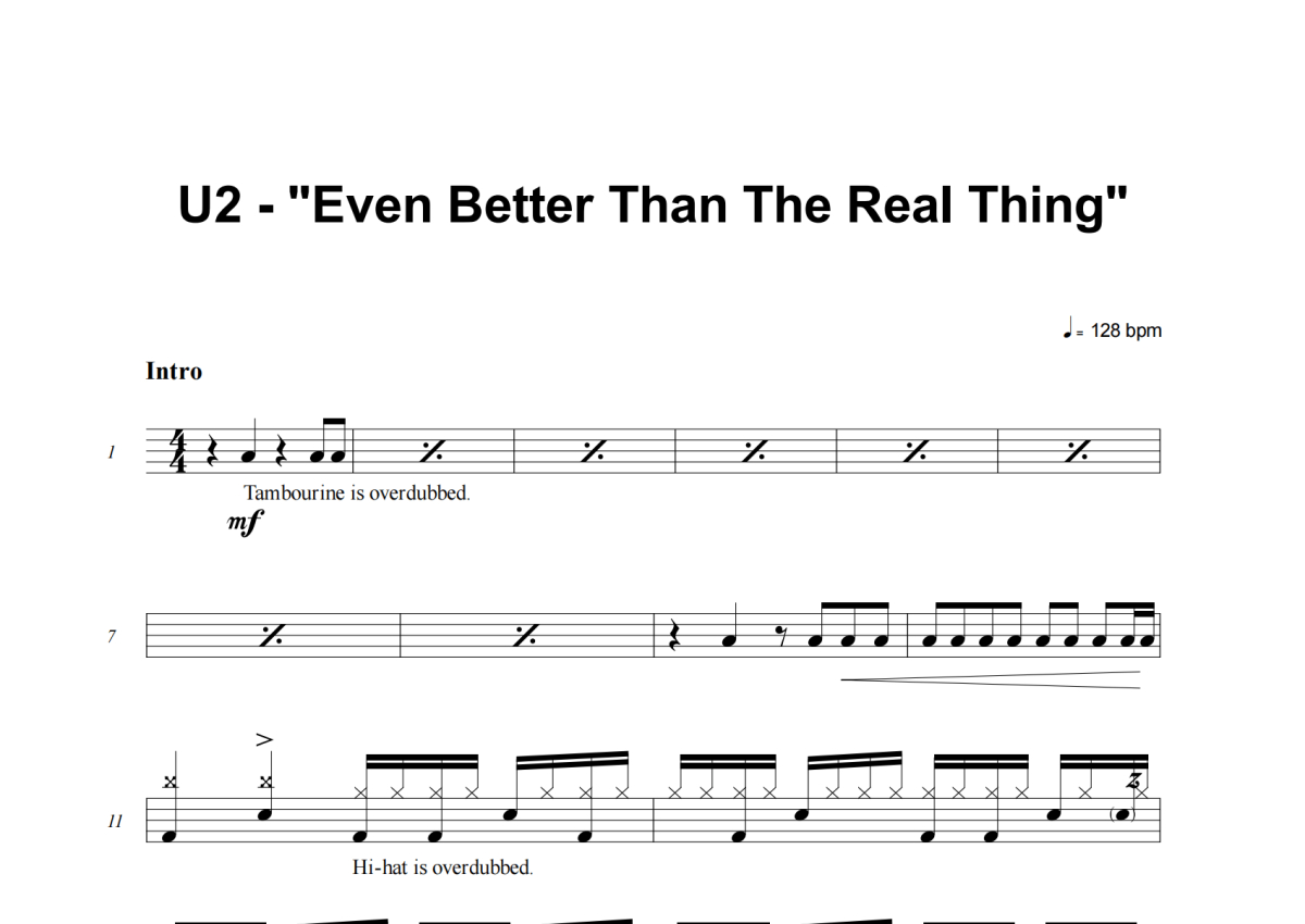 《Even Better Than The Real Thing》是U2演唱的一首歌曲,这份架子鼓谱共有五张高清图谱,图谱由 @积极处世 编配上传,图谱使用五线谱编配,使用这份Even Better Than The Real Thing架子鼓谱,你将能够轻松地敲打出这首U2的Even Better Than The Real Thing,快来尝试吧。
