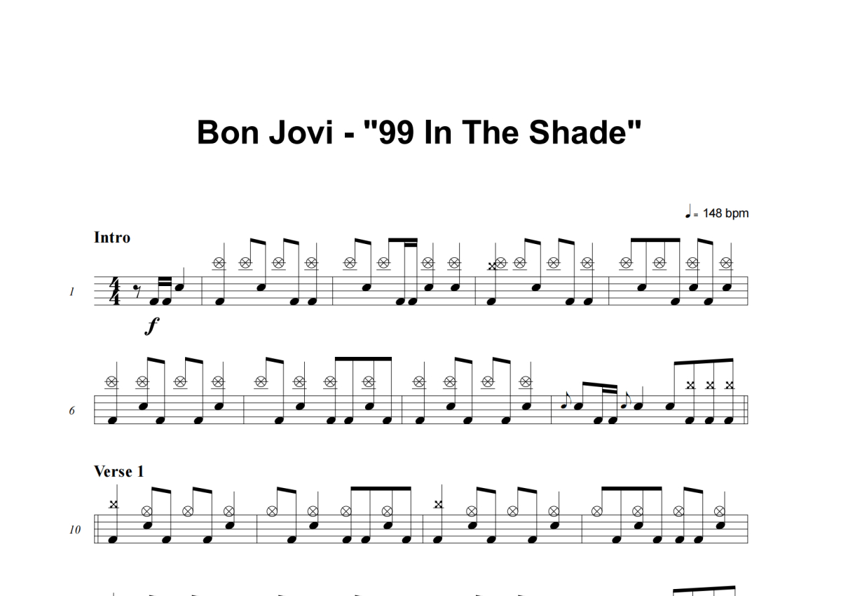 Bon Jovi《99 In The Shade》架子鼓谱